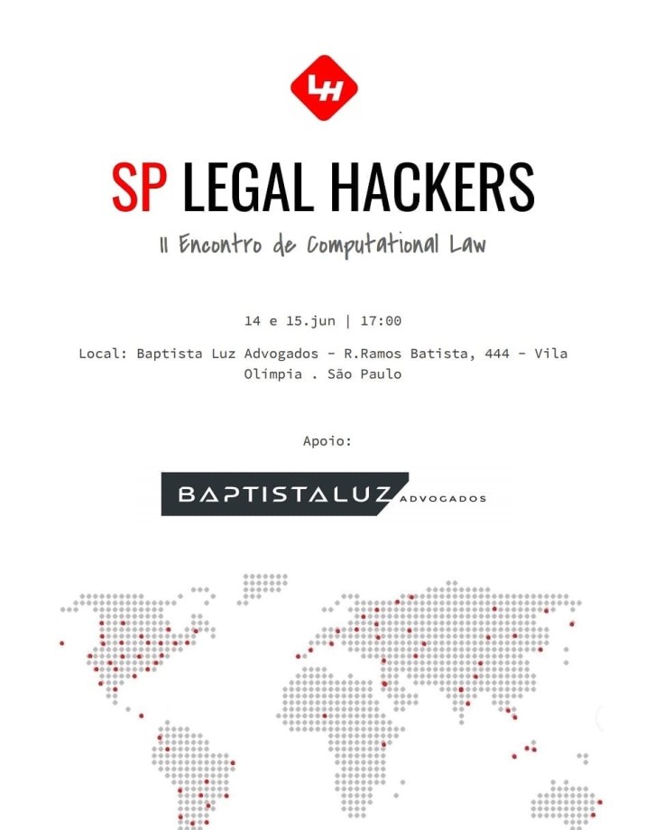 Trazido ao Brasil no fim de 2017, o Legal Hackers é um movimento surgido nos EUA, que hoje já conta com grupos em mais de 90 cidades espalhadas pelo mundo, reunindo juristas, empresários, acadêmicos, oficiais de políticas públicas e vários outros interessados em discussões profundas e desenvolvimento de soluções na interseção do Direito, Tecnologia e Sociedade. Inscrições para o evento aqui, para saber mais sobre o projeto clique aqui!