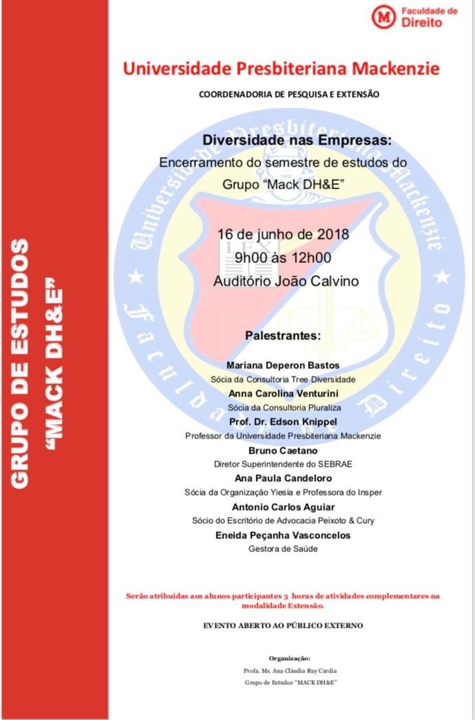 O Grupo de Estudos Mack&DH, coordenado pela Professora Ana Claudia Ruy Cardia realizará um encontro aberto para encerramento do semestre, dia 16/06, 12h, no Auditório João Calvino.