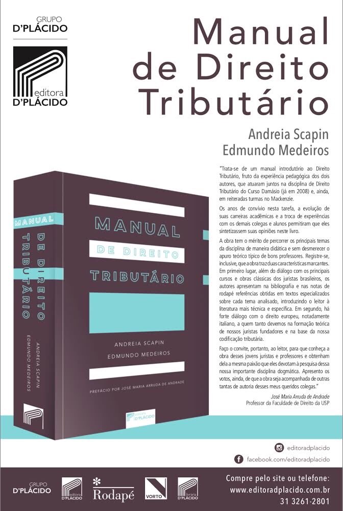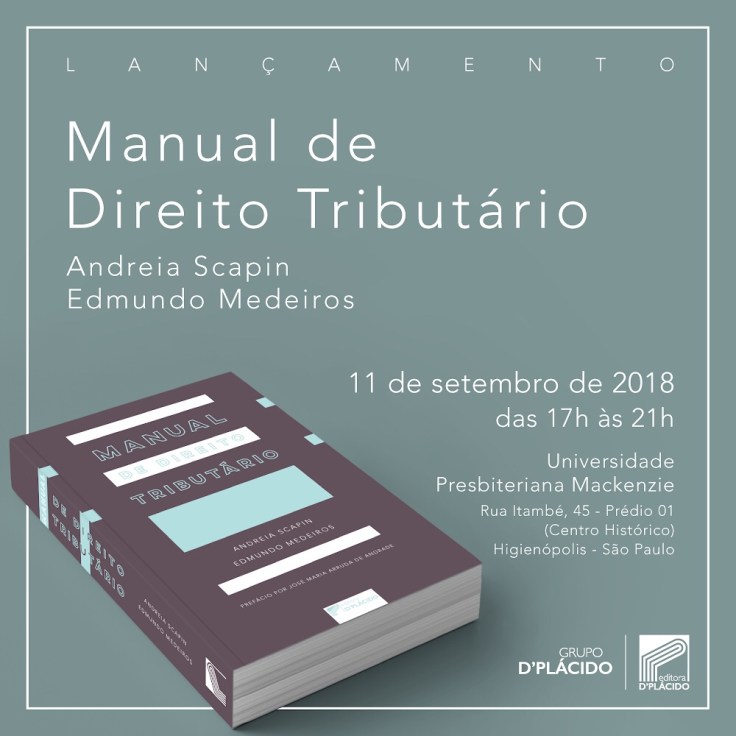 O lançamento do livro “Manual de Direito Tributário” ocorre hoje, a partir das 17 horas, no prédio 1 do Mackenzie.