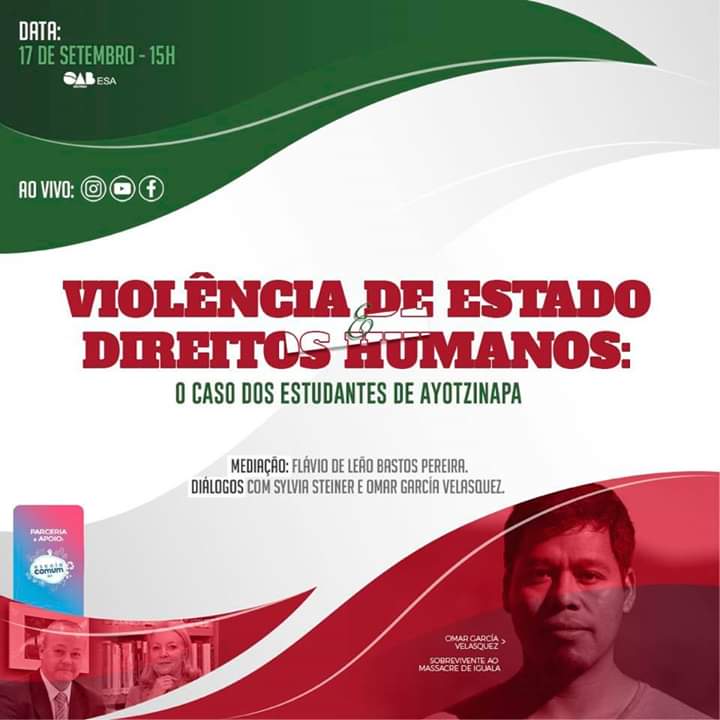 A Escola Superior de Advocacia realizará, em 17/09, um debate que terá como tema central a violência exercida pelo Estado e os Direitos Humanos. O evento contará com a presença de Sylvia Helena de Figueiredo Steiner (magistrada, foi juíza do Tribunal Penal Internacional, sediado em Haia, na Holanda e atua como professora na Fundação Getúlio Vargas), do ativista Omar García Velazquez — sobrevivente do Massacre de Iguala — e mediação de Flavio Leão de Bastos Pereira. Você pode acompanhar a transmissão nos perfis da ESA OAB SP nas plataformas Facebook, Instagram e Youtube.