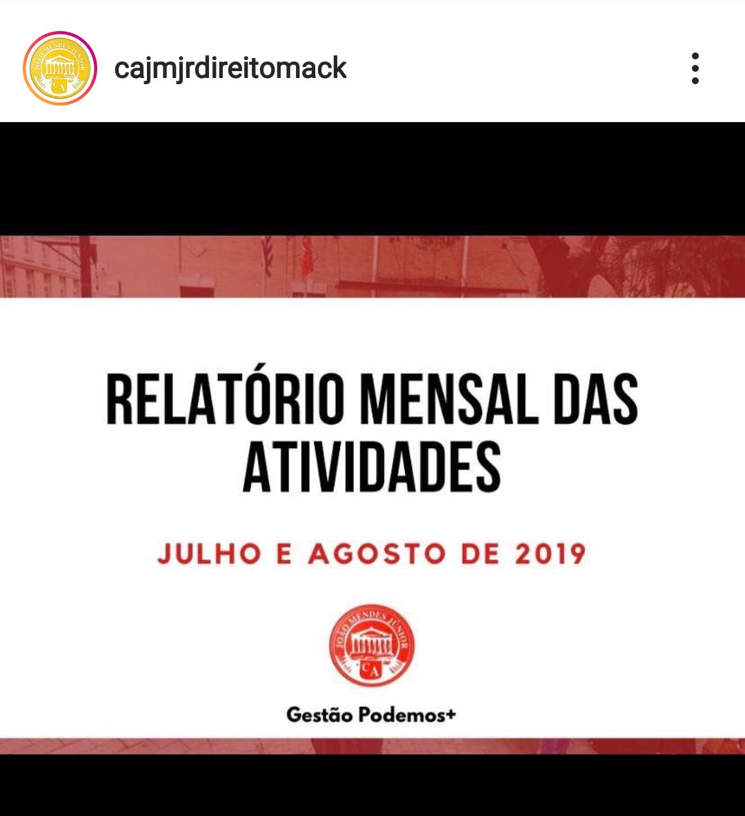 O CAJMJr elaborou relatório mensal com tudo que foi realizado em julho e agosto/19 pela gestão Podemos+.