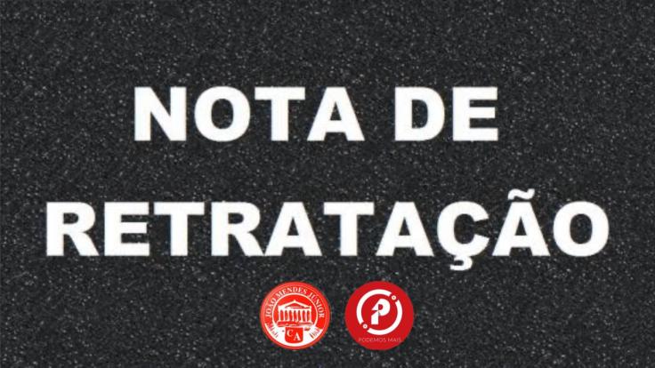 NOTA DE RETRATAÇÃO E AGRADECIMENTO