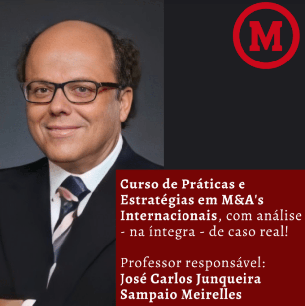 Ainda, o curso de Práticas e Estratégias em M&A´s Internacionais, cuja responsabilidade é do Professor José Carlos Junqueira Sampaio Meirelles, será realizado de 14 de outubro a 2 de dezembro, das 19 as 22, com carga horária total de 24 horas complementares.