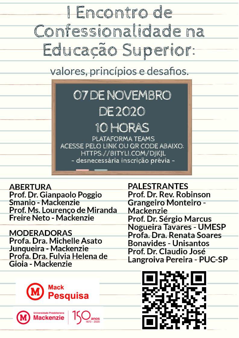 No dia 7 de novembro de 2020, às 10h, através da plataforma “Teams”, a Faculdade de Direito através da coordenação da Prof. Dra. Michelle Asato Junqueira realizará o encontro de confessionalidade no ensino superior, no qual haverá palestras sobre os valores, princípios e desafios que envolvem o tema.