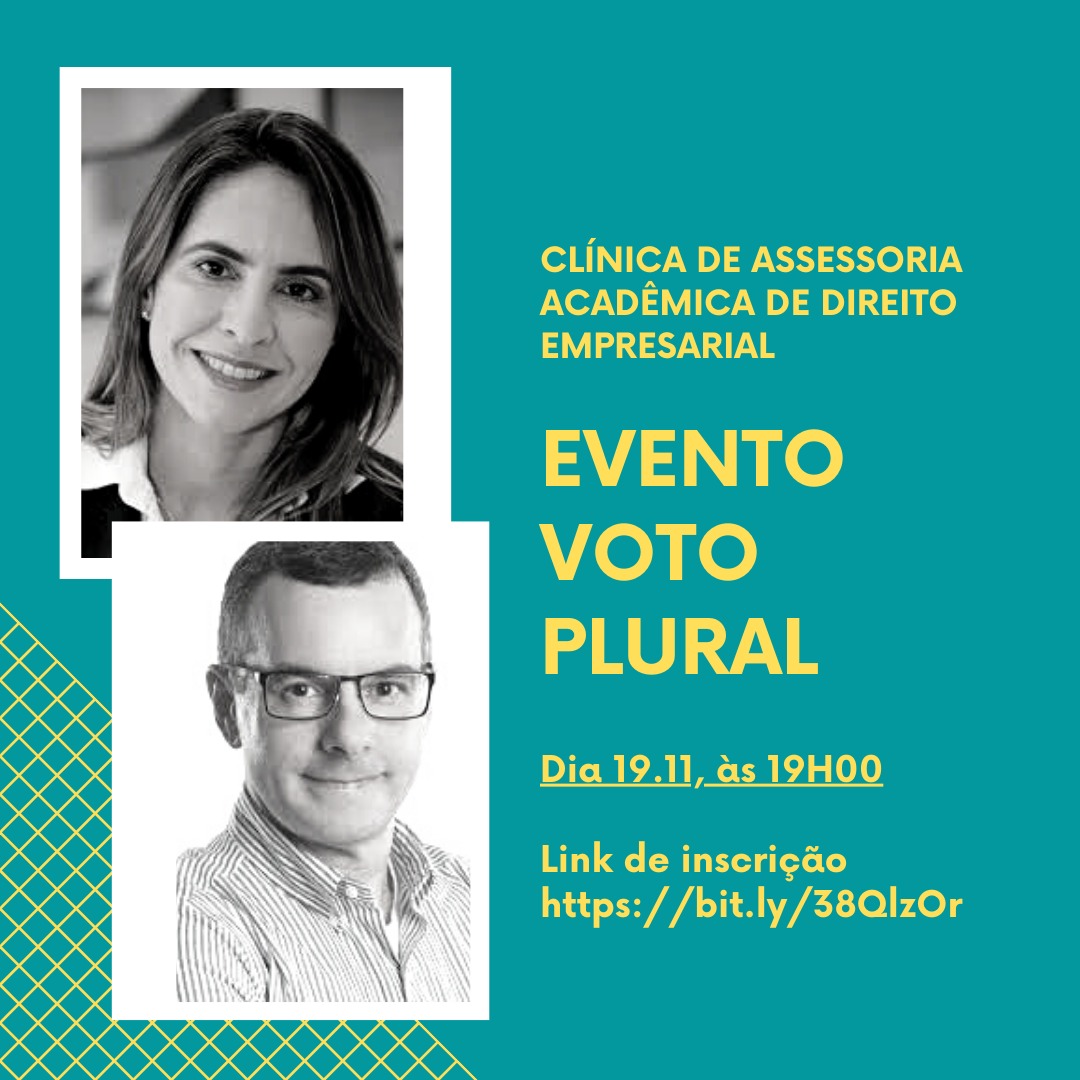 A CAAME – Clínica de Assessoria Acadêmica Mackenzie Empresarial, tem a honra de anunciar o evento ‘’Voto Plural’’, organizado para discutir os reflexos advindos da Lei nº 10.736/18, que institui reforma na LSA para companhias de capital fechado.
