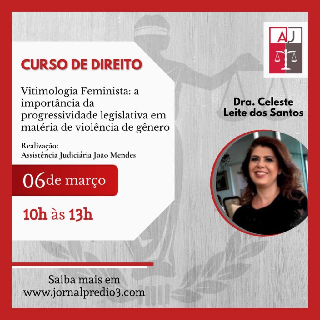 A Assistência Judiciária João Mendes (AJ), órgão de orientação jurídica gratuita à população de baixa renda, dos alunos e antigos alunos da Faculdade de Direito do Mackenzie, anuncia a realização do Curso “Vitimologia Feminista: a importância da progressividade legislativa em matéria de violência de gênero ”, que será ministrado pela Dra. Celeste Leite dos Santos.