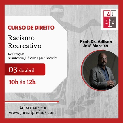 A Assistência Judiciária João Mendes (AJ), órgão de orientação jurídica gratuita à população de baixa renda, dos alunos e antigos alunos da Faculdade de Direito do Mackenzie, anuncia a realização do Curso “Racismo Recreativo”, que será ministrado pelo professor Prof. Dr. Adilson José Moreira da Faculdade de Direito do Mackenzie.