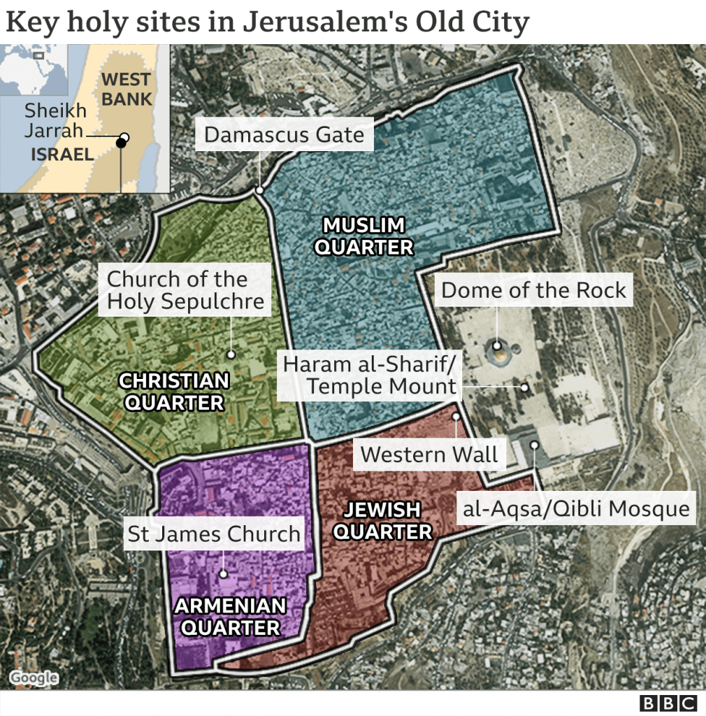 A tensão voltou a crescer na semana passada após ser proferida uma decisão judicial determinando que algumas famílias palestinas deveriam deixar o bairro de Sheikh Jarrah, pois a população judaica teria direito àquela região. A polícia israelense iniciou o despejo dos moradores, gerando novos conflitos.