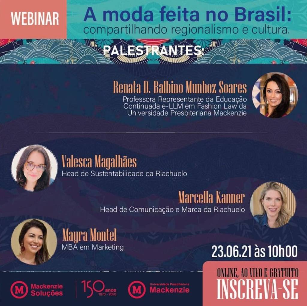 É com muita alegria que anunciamos o Webinar “A moda feita no Brasil: compartilhando regionalismo e cultura”, que será realizado em ambiente online, ao vivo e gratuito a todos os interessados, no dia 23.06.2021, às 10h00.