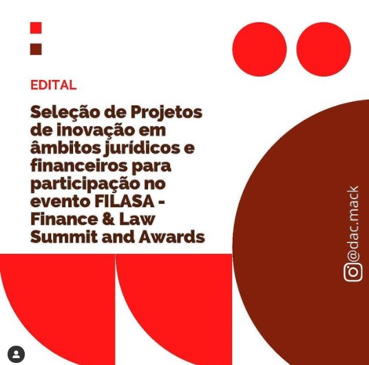 A Coordenação de Extensão, Coordenação de Pesquisa e a Representação de Inovação e Empreendedorismo – todas da Faculdade de Direito da UPM – abrem o edital para seleção de discentes para participação do evento FILASA – Finance & Law Summit and Awards, que tem por objetivo a promoção de estratégias, discussões e fomento de insights junto aos profissionais do mercado jurídico e financeiro.