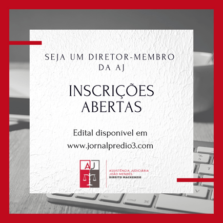 A Assistência Judiciária João Mendes (AJJM), órgão de assistência e orientação jurídica gratuita a população de baixa renda, vinculado aos alunos e antigos alunos da Faculdade de Direito da Universidade Presbiteriana Mackenzie, conveniada com a Defensoria Pública do Estado de São Paulo, publica na presente data (15/08/2021) seu Edital de Seleção para as vagas disponíveis de Diretores Executivos.