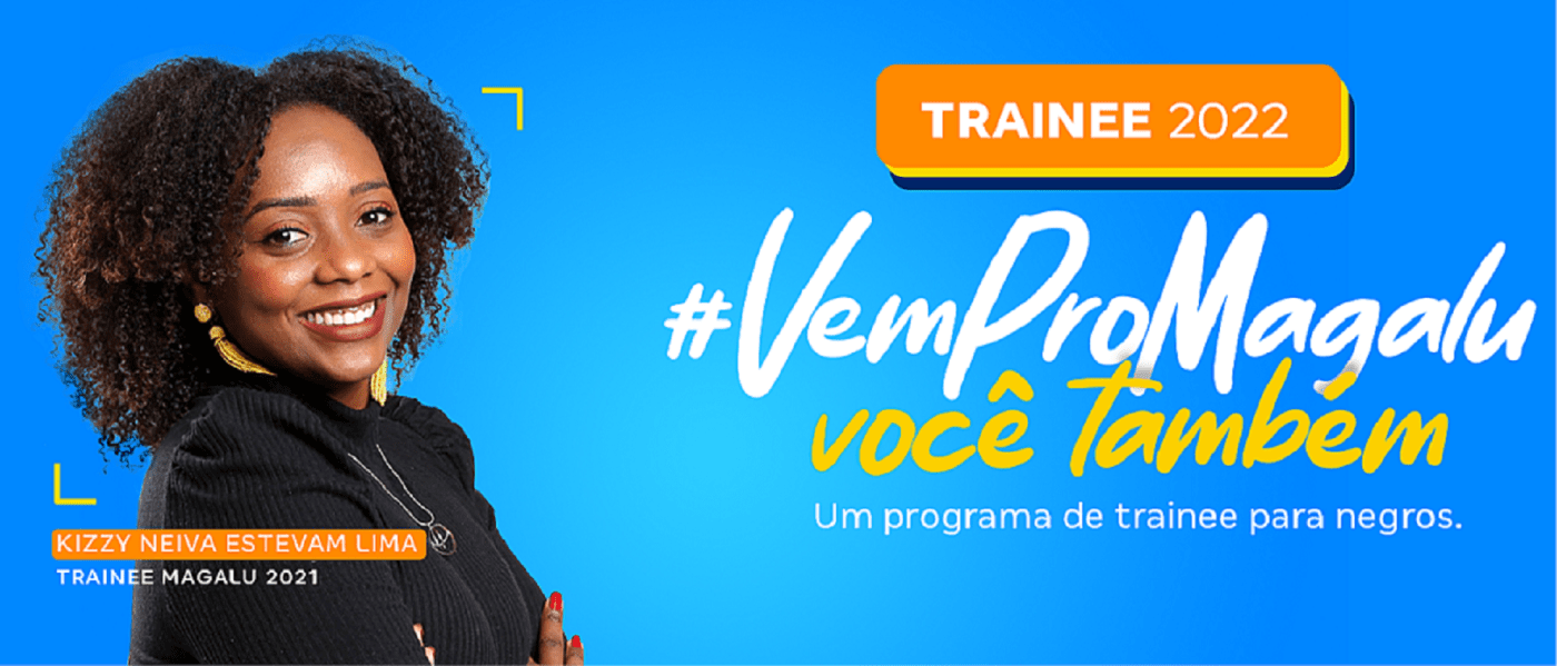 O Magazine Luiza, ou Magalu, empresa de comércio varejista nacionalmente reconhecida, está lançando o seu segundo programa de trainees exclusivo para pessoas negras. Esse projeto visa equiparar a proporção étnica do quadro de funcionários à população brasileira, composta por cerca de 56% de pessoas negras, segundo a PNAD do IBGE. Atualmente, no ambiente corporativo, apenas 51,8% dos funcionários se declaram pretos ou pardos. Além disso, a iniciativa tem por objetivo fomentar a presença de pessoas negras em cargos de liderança, já que o número de pessoas negras nessa posição na empresa cai para 41,5%.