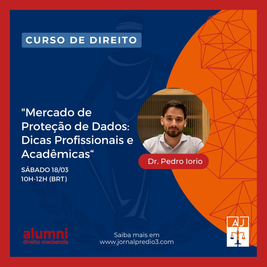 A Assistência Judiciária João Mendes (AJ), órgão de orientação jurídica gratuita à população de baixa renda, dos alunos e antigos alunos da Faculdade de Direito do Mackenzie, anuncia a realização do Curso “Mercado de Proteção de Dados: Dicas Profissionais e Acadêmicas”, que será ministrado pelo Prof. Dr. Pedro Iorio, Advogado no Artese Advogados, possui formação técnica na área da internet e tecnologia, atua como DPO as a service como consultor jurídico de DPOs e escritórios de privacidade em diversos setores econômicos, é Professor convidado da Escola Superior de Advocacia (ESAOAB/SP) e Cofundador da Law-B.