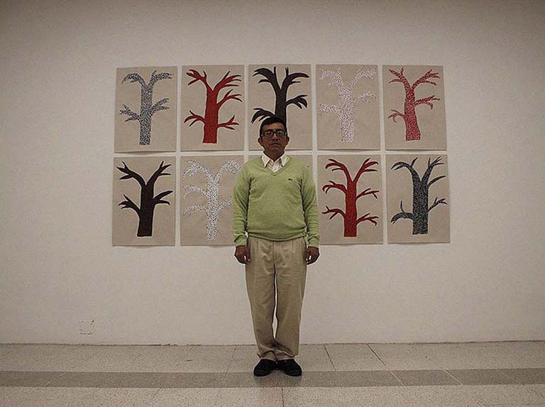 Desde os anos 1990, Sheroanawe Hakihiiwe, de 52 anos, tem se dedicado ao resgate da memória oral de seu povo, da cosmogonia yanomami e das tradições ancestrais. Ele vive na comunidade yanomami de Pori Pori, localizada no município de Alto Orinoco, no estado venezuelano do Amazonas. Sua atuação no campo da criação artística começou quando aprendeu a fazer papel artesanal utilizando a técnica Shiki Abaca — papel feito com fibras nativas — sob a orientação de Laura Anderson Barbata.