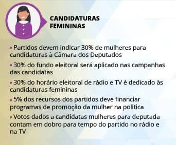 A princípio, desde os tempos coloniais, haja vista os ideais patriarcais daquela civilização, as decisões políticas, os plebiscitos ou as assembleias tinham cargos ocupados apenas por homens. A imposição da superioridade masculina no âmbito político permaneceu vigente durante longos períodos, até momentos nos quais os sindicatos e as associações impuseram a causa da representatividade feminina como pauta imprescindível de discussão. Com a intenção de reverter situações semelhantes, mudanças na legislação vigente do Brasil impuseram uma ocupação mínima de 30% de mulheres nos partidos políticos. Contudo, essa designação tem sido descumprida ou não efetivada, pois suas ocupações e candidaturas não são, em boa parte, financiadas pelos respectivos partidos políticos. Isso ocorre mesmo tendo em vista as obrigatoriedades impostas pela legislação no que tange às candidaturas femininas na política, portanto, tratam-se diretamente da participação política desse público.
