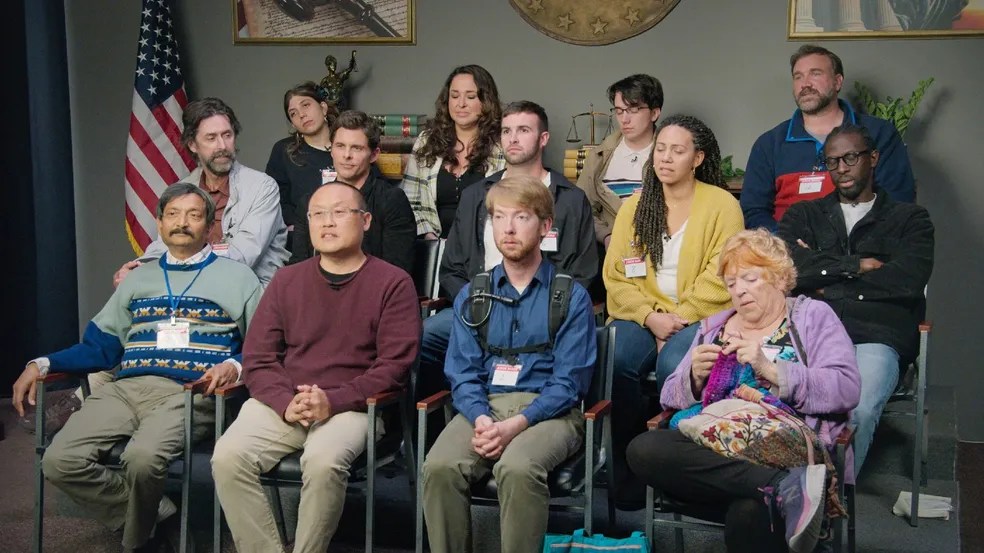 Desse modo, o seriado, dividido em 8 episódios e disponível na Prime Video, mostra a seleção dos jurados, a apresentação do caso, a defesa dos advogados e a relação entre os personagens do júri de forma satirizada. Assim, o público se vê diante de atitudes absurdas que nunca seriam permitidas em um tribunal real, mas que foram apresentadas a Ronald, buscando as reações do único que não estava ciente da farsa.