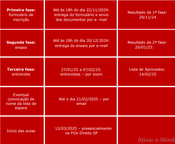 Na terceira fase, os selecionados participarão de uma entrevista online, entre 27 de janeiro e 7 de fevereiro de 2025. A lista final de aprovados será publicada em 14 de fevereiro, e as aulas começarão em 12 de março de 2025.