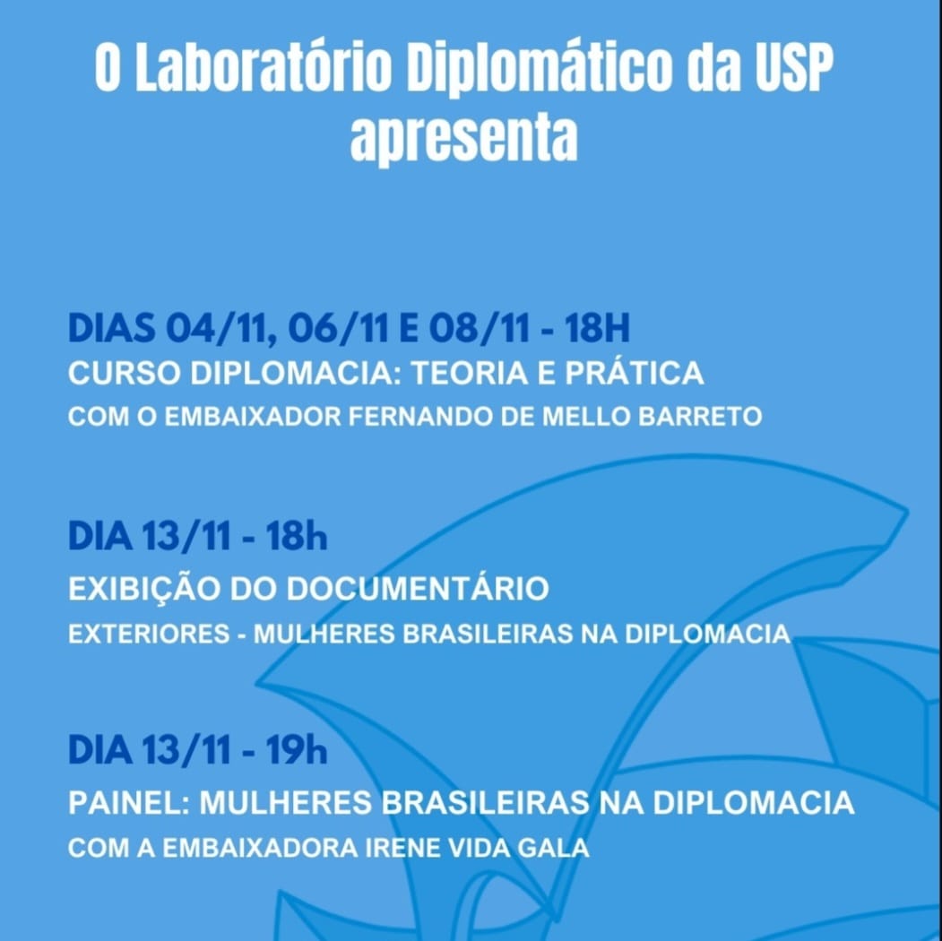 O Laboratório Diplomático preparou três eventos sobre carreiras diplomáticas para o público. O Lad USP é um grupo de extensão universitária da Faculdade de Direito da Universidade de São Paulo (USP) voltado para a carreira diplomática, temas de política internacional e política externa. Possui como objetivo aproximar os estudantes e o público em geral da realidade da carreira diplomática, proporcionando uma visão prática e inspiradora sobre o que significa o trabalho na carreira.