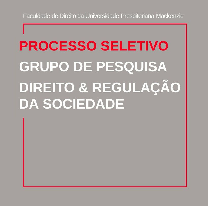 Estão abertas as inscrições para seletiva de novos membros para o Grupo de Estudo “DIREITO & REGULAÇÃO DA SOCIEDADE” até 24 de fevereiro de 2025. O Grupo é coordenado pelo docente Professor Dr. Marco Antonio Loschiavo Leme de Barros da Faculdade de Direito da Universidade Presbiteriana Mackenzie e suas atividades estão vinculadas ao grupo de pesquisa CNPq.