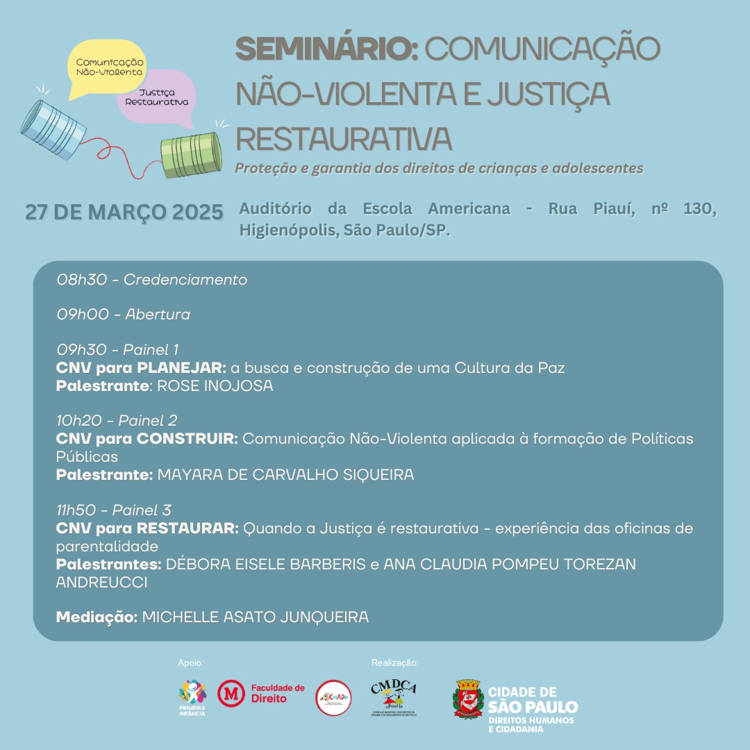 • O terceiro às 11h50, discutindo a Justiça Restaurativa e experiências de parentalidade.