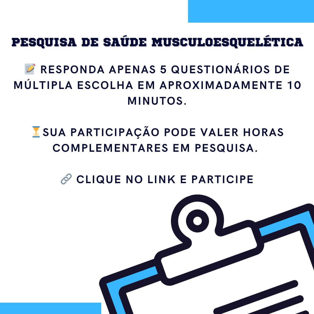 Alunos do Curso de Fisioterapia do Mackenzie estão desenvolvendo uma pesquisa com universitários sobre saúde musculoesquelética. Para participar basta responder o formulário.