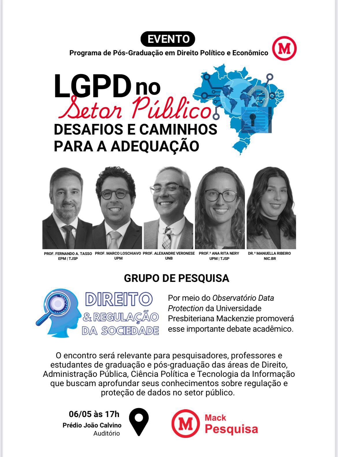 O Grupo de Pesquisa de Direito & Regulação da Sociedade se encontrará hoje, dia 06/05 às 17 horas no Auditório do Prédio João Calvino.