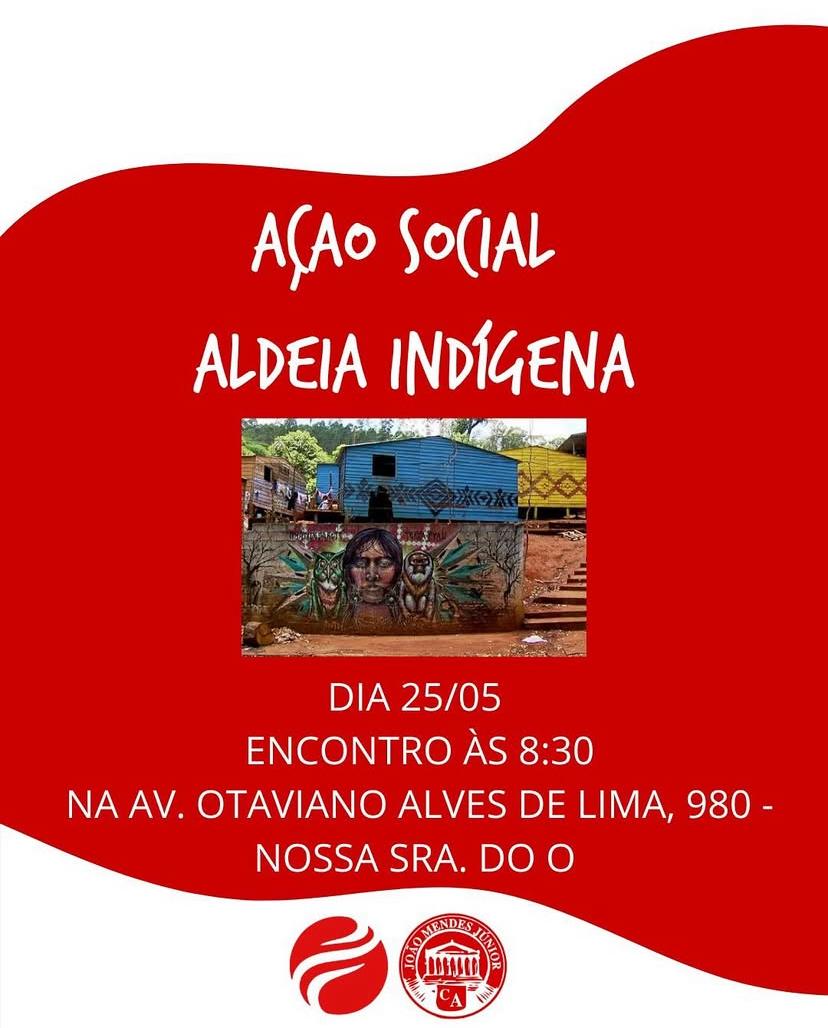 No dia 25/05 o Centro Acadêmico João Mendes Junior irá realizar uma ação social na Aldeia Indígena Tekoa Pyau e e convida os interessados a participarem!