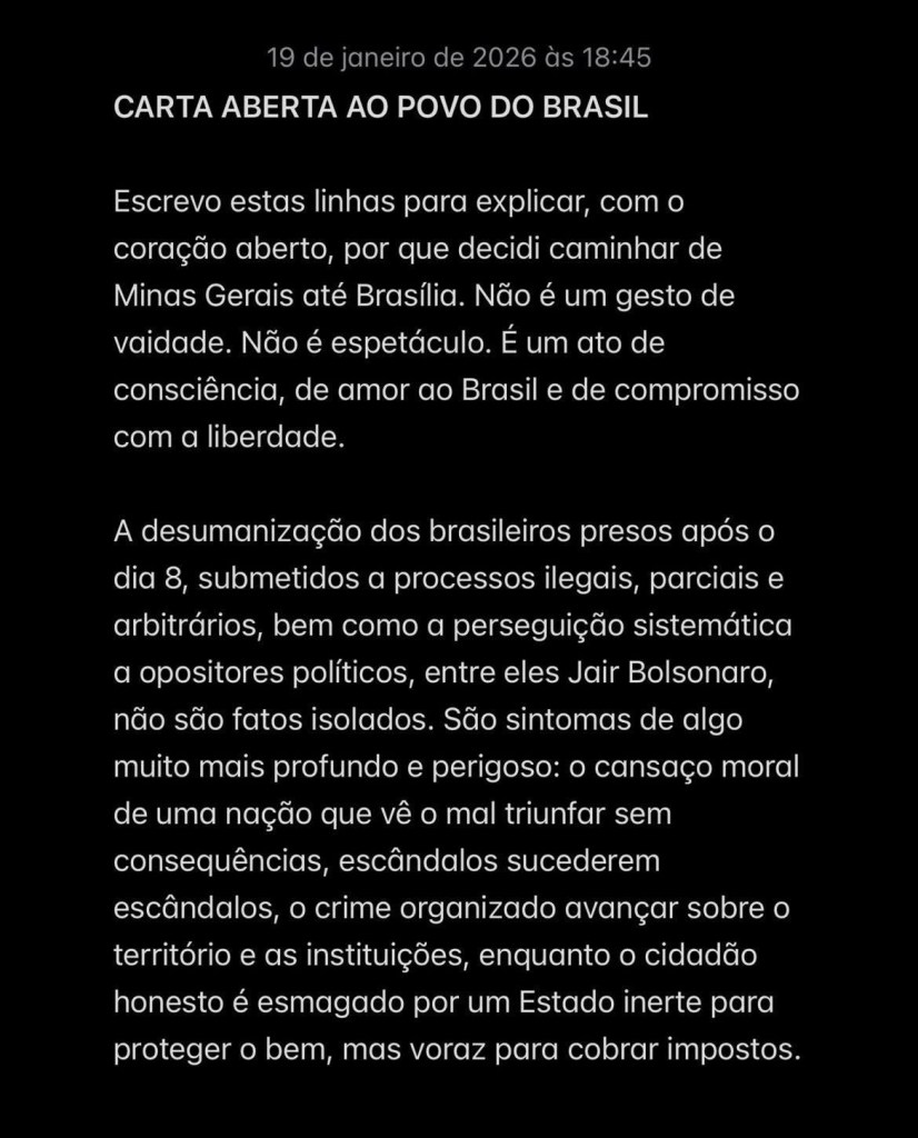 Texto escrito por Nikolas Ferreira postado em suas próprias redes sociais.