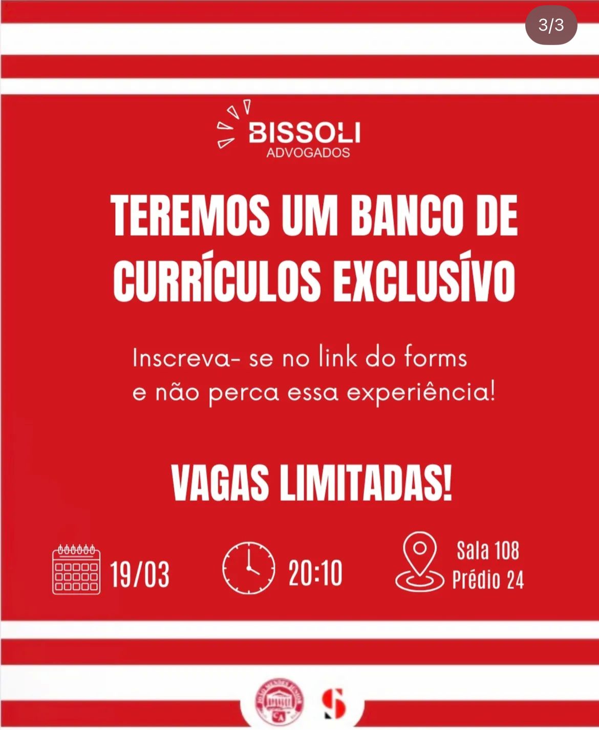 As vagas são limitadas e serão preenchidas por ordem de inscrição. Os interessados devem se inscrever até o dia 18 de março, ao meio-dia. Caso selecionado, o aluno será contatado pelo Centro Acadêmico para confirmação da participação. ⚖️📚