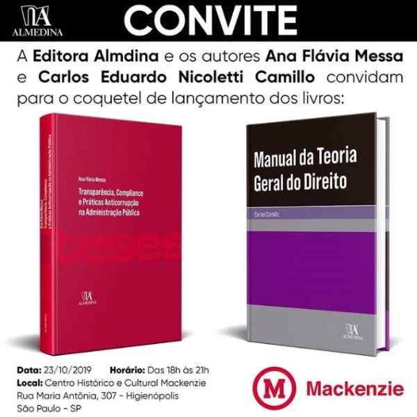 No dia 23 de outubro de 2019, das 18 horas às 21 horas, no Centro Histórico e Cultural Mackenzie, o qual se localiza na Rua Maria Antônia n° 307, ocorrerá o lançamento dos livros da Profa. Ana Flávia Messa e do Prof. Carlos Eduardo Nicoletti Camilo, professores da Faculdade de Direito da Universidade Presbiteriana Mackenzie,... Continuar Lendo →