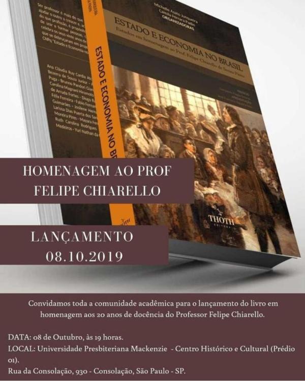 No dia 08 de outubro, às 19h00, ocorrerá o lançamento do livro 'Estado e Economia no Brasil', escrito em homenagem ao professor Dr. Felipe Chiarello. Toda a comunidade acadêmica está convidada para o evento, que ocorrerá no Centro Histórico e Cultural da Universidade (Prédio 01). O professor Dr. Felipe Chiarello é o atual diretor da... Continuar Lendo →