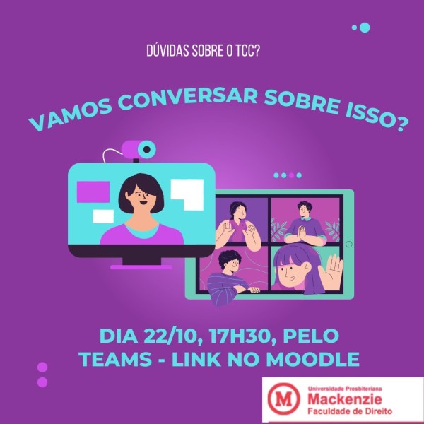 No dia 22 de outubro, a Faculdade de Direito UPM promoverá uma reunião on-line, através da plataforma Teams, a fim de sanar dúvidas quanto ao Trabalho de Conclusão de Curso. O plantão começará às 17h30, sendo que o link para o acesso pode ser encontrado na plataforma Moodle. Data: 22/10/2021 Horário: início às 17h30 Plataforma:... Continuar Lendo →