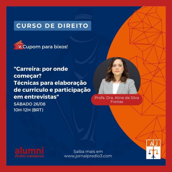 A Assistência Judiciária João Mendes, entidade prestadora de atendimento jurídico gratuito à população de baixa renda, vinculada aos alunos e antigos alunos da Faculdade de Direito Mackenzie, promove cursos online direcionados aos estudantes de direito. No dia 14 de setembro (sábado), acontecerá o curso promovido pela Assistência Judiciária João Mendes (AJJM), sobre o tema "Como... Continuar Lendo →