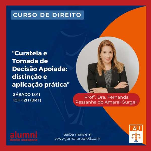 A Assistência Judiciária João Mendes (AJ), órgão de orientação jurídica gratuita à população de baixa renda, dos alunos e antigos alunos da Faculdade de Direito do Mackenzie, anuncia a realização do curso “Curatela e Tomada de Decisão Apoiada: Distinção e Aplicação Prática”, que será ministrado pela Prof. Dra. Fernanda Gurgel. Será abordado no curso: -... Continuar Lendo →