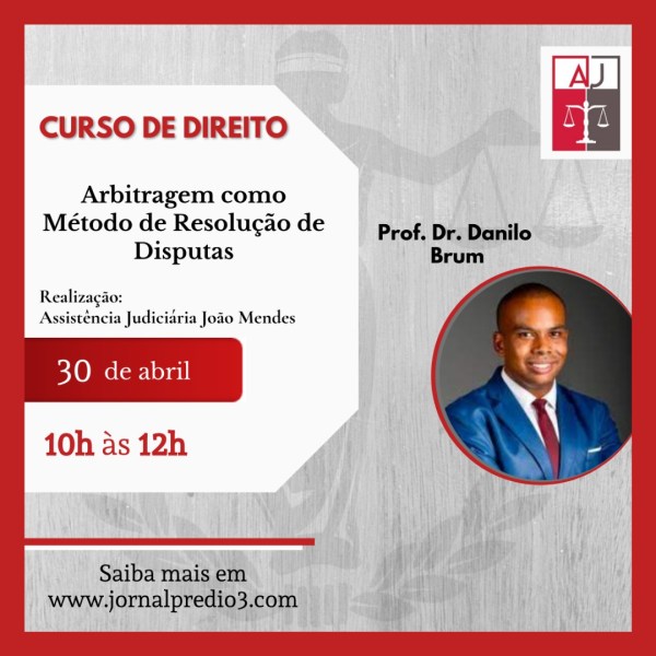 Por por Bianca Del Nero Regattieri A Assistência Judiciária João Mendes (AJ), órgão de orientação jurídica gratuita à população de baixa renda, dos alunos e antigos alunos da Faculdade de Direito do Mackenzie, anuncia a realização do Curso “Arbitragem como Método de Resolução de Disputas”, que será ministrado pelo Prof. Dr. Danilo Brum, Doutorando em... Continuar Lendo →