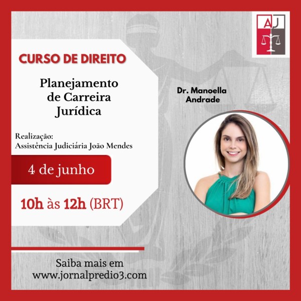 A Assistência Judiciária João Mendes (AJ), órgão de orientação jurídica gratuita à população de baixa renda, dos alunos e antigos alunos da Faculdade de Direito do Mackenzie, anuncia a realização do Curso “Planejamento de Carreira Jurídica”, que será ministrado pela Dr. Manoella Andrade. Será abordado no curso:- Caminhos do Direito e possibilidades de atuação;- Carreiras... Continuar Lendo →