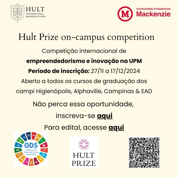 Atenção Mackenzistas! Estão abertas as inscrições para competição internacional de empreendedorismo e inovação da Universidade Presbiteriana Mackenzie (UPM) em parceria com a Hult International Busness School. A competição que tem seu período de inscrições aberto até o dia 17/12/24, convida todos os Mackenzistas, independentemente de curso ou de campus, a participar deste evento que ocorrera... Continuar Lendo →