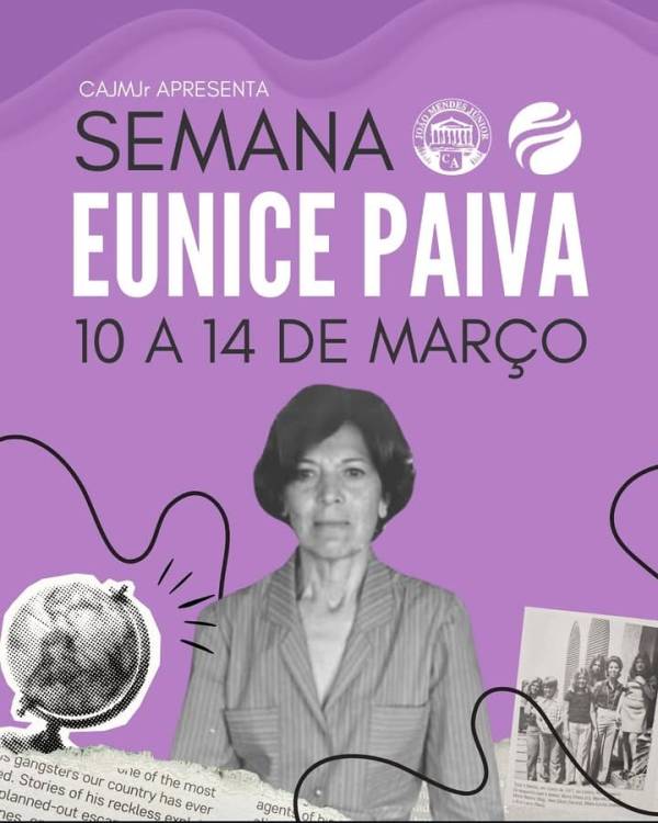 Fonte: Instagram @cajmjr A Semana da Mulher está chegando! De 10 a 14 de março, o CAJMJr. promoverá um espaço de reflexão e conscientização sobre igualdade de gênero, relembrando as lutas e conquistas que marcaram a história. Este ano, o CAJMJr. escolheu homenagear Eunice Paiva, uma mulher que dedicou sua vida à advocacia e à... Continuar Lendo →