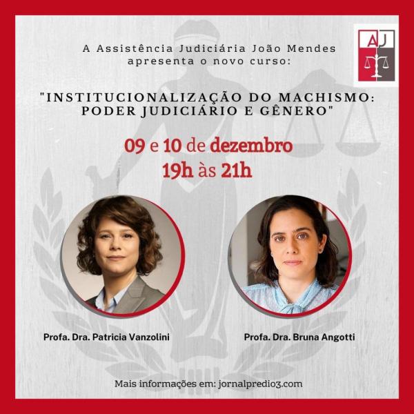 A Assistência Judiciária João Mendes (AJ), órgão de orientação jurídica gratuita à população de baixa renda, dos alunos e antigos alunos da Faculdade de Direito do Mackenzie, anuncia a realização do Curso “Institucionalização do Machismo: poder judiciário e gênero”, que será ministrado pelas professoras Patricia Vanzolini, docente na Universidade Mackenzie e advogada criminalista no "Brito... Continuar Lendo →