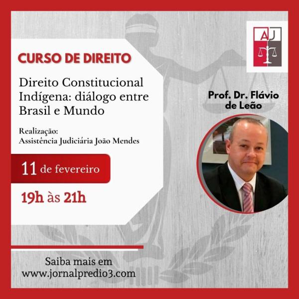 A Assistência Judiciária João Mendes (AJ), órgão de orientação jurídica gratuita à população de baixa renda, dos alunos e antigos alunos da Faculdade de Direito do Mackenzie, anuncia a realização do Curso “Direito Constitucional Indígena: diálogo entre Brasil e Mundo ”, que será ministrado pelo Professor da Faculdade de Direito do Mackenzie, Flávio de Leão... Continuar Lendo →