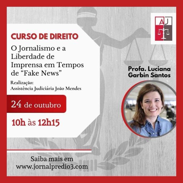A Assistência Judiciária João Mendes (AJ), órgão de orientação jurídica gratuita à população de baixa renda, dos alunos e antigos alunos da Faculdade de Direito do Mackenzie, anuncia a realização do Curso “O Jornalismo e a Liberdade de Imprensa em Tempos de ‘Fake News’”, que será ministrado pela, professora Luciana Garbin Santos, editora de Planejamento... Continuar Lendo →