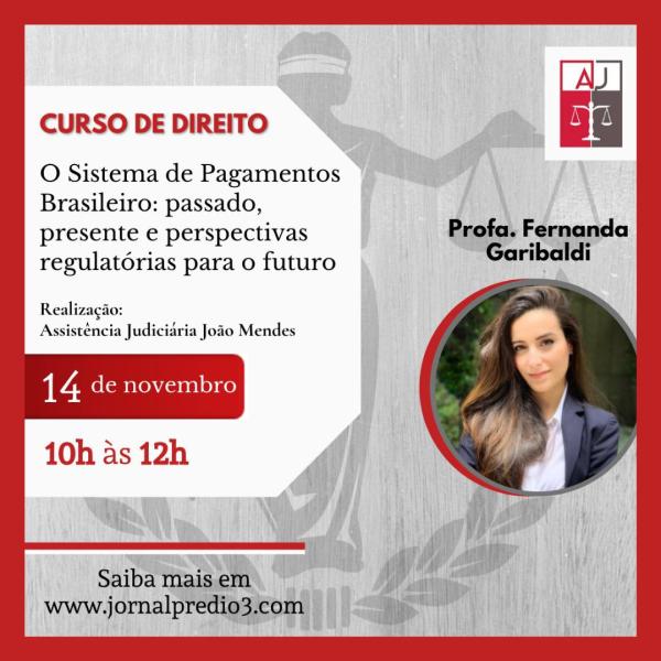 A Assistência Judiciária João Mendes (AJ), órgão de orientação jurídica gratuita à população de baixa renda, dos alunos e antigos alunos da Faculdade de Direito do Mackenzie, anuncia a realização do Curso “O Sistema de Pagamentos Brasileiro: passado, presente e perspectivas regulatórias para o futuro”, que será ministrado pela professora Fernanda Garibaldi, mestra e doutoranda... Continuar Lendo →