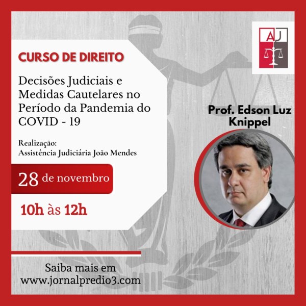 A Assistência Judiciária João Mendes (AJ), órgão de orientação jurídica gratuita à população de baixa renda, dos alunos e antigos alunos da Faculdade de Direito do Mackenzie, anuncia a realização do Curso “Decisões Judiciais e Medidas Cautelares no Período da Pandemia do COVID - 19”, que será ministrado pelo professor Edson Knippel, da Faculdade de... Continuar Lendo →