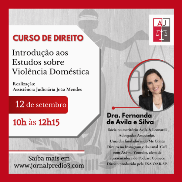 A Assistência Judiciária João Mendes (AJ), órgão de orientação jurídica gratuita à população de baixa renda, dos alunos e antigos alunos da Faculdade de Direito do Mackenzie, anuncia a realização do Curso “Introdução aos Estudos sobre Violência Doméstica ”, que será ministrado pela professora Fernanda de Avila e Silva, bacharela em Direito pela Universidade Presbiteriana... Continuar Lendo →