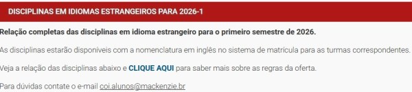 Disciplinas em outros idiomas – Componentes em idioma estrangeiro para 2026.1