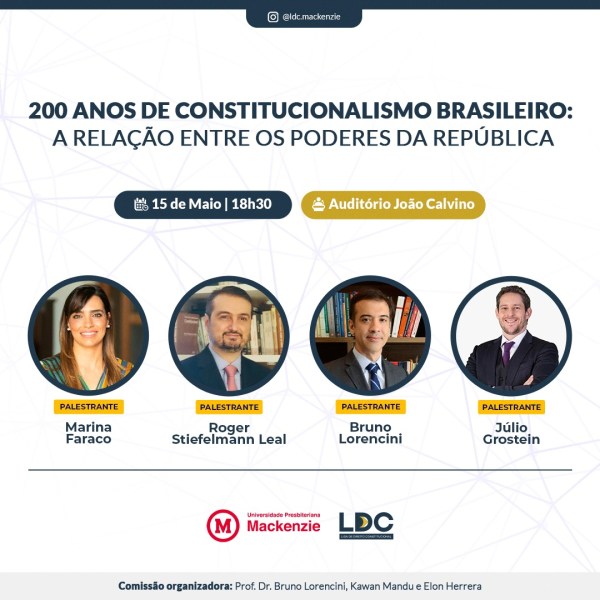Seguindo o nosso ciclo de comemorações dos 200 anos da primeira Constituição do Brasil, realizaremos mais um evento imperdível, no dia 15/05/2024! Com a presença da Profa. Dra. Marina Faraco (PUC-SP), o Prof. Dr. Roger Stiefelmann Leal (USP), o Prof. Dr. Bruno Lorencini (UPM) e o Prof. Dr. Júlio Grostein (UPM) para uma palestra sobre... Continuar Lendo →