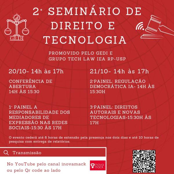 2º Seminário de Direito e Tecnologia — promovido pelo GEDI e Grupo Tech Law IEA RP-USP