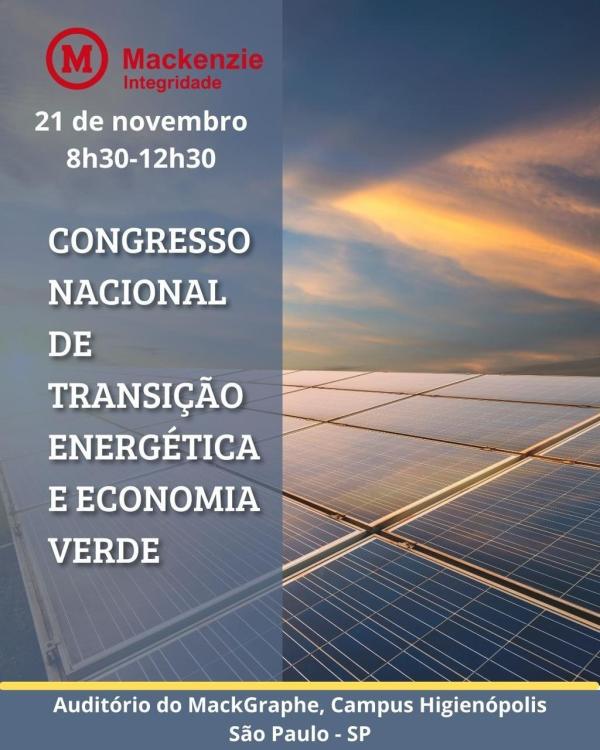 Em 21 de novembro de 2023, das 08h30 - 12h30, foi realizado o Congresso Nacional de Transição Energética e Economia Verde, com palestras e debates com foco ambiental. Para que sejam concedidas as horas de pesquisas, os discentes deverão submeter pelo sistema Moodle, até o dia 30 de novembro às 23h59, um trabalho escrito nos moldes do edital publicado.
