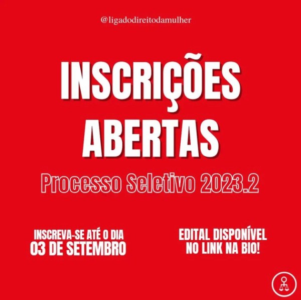Olá, Mackenzistas! Com muita alegria informamos que a Liga do Direito da Mulher está com o processo seletivo para o 2º semestre de 2023 ABERTO! Serão selecionados 14 novos membros. Você pode acessar o edital e o formulário de inscrição através do link na Bio do Instagram oficial da Liga. Em caso de dúvidas, envie... Continuar Lendo →