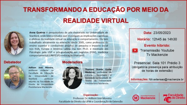 O evento acontecerá no dia 23/05/2023, das 12:45 às 14:30. Será transmitido ao vivo pelo canal TV Mackenzie no YouTube e também será aberto ao público presencial, na sala 101 - Prédio 3 (Concedendo horas de extensão para quem acompanhar presencialmente). O debate ocorrerá entre o Dr. Adilson José Moreira e a Dra. Anna Queiroz,... Continuar Lendo →